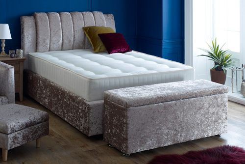 - Bed frame shown in Crush Velvet Mink (A2)